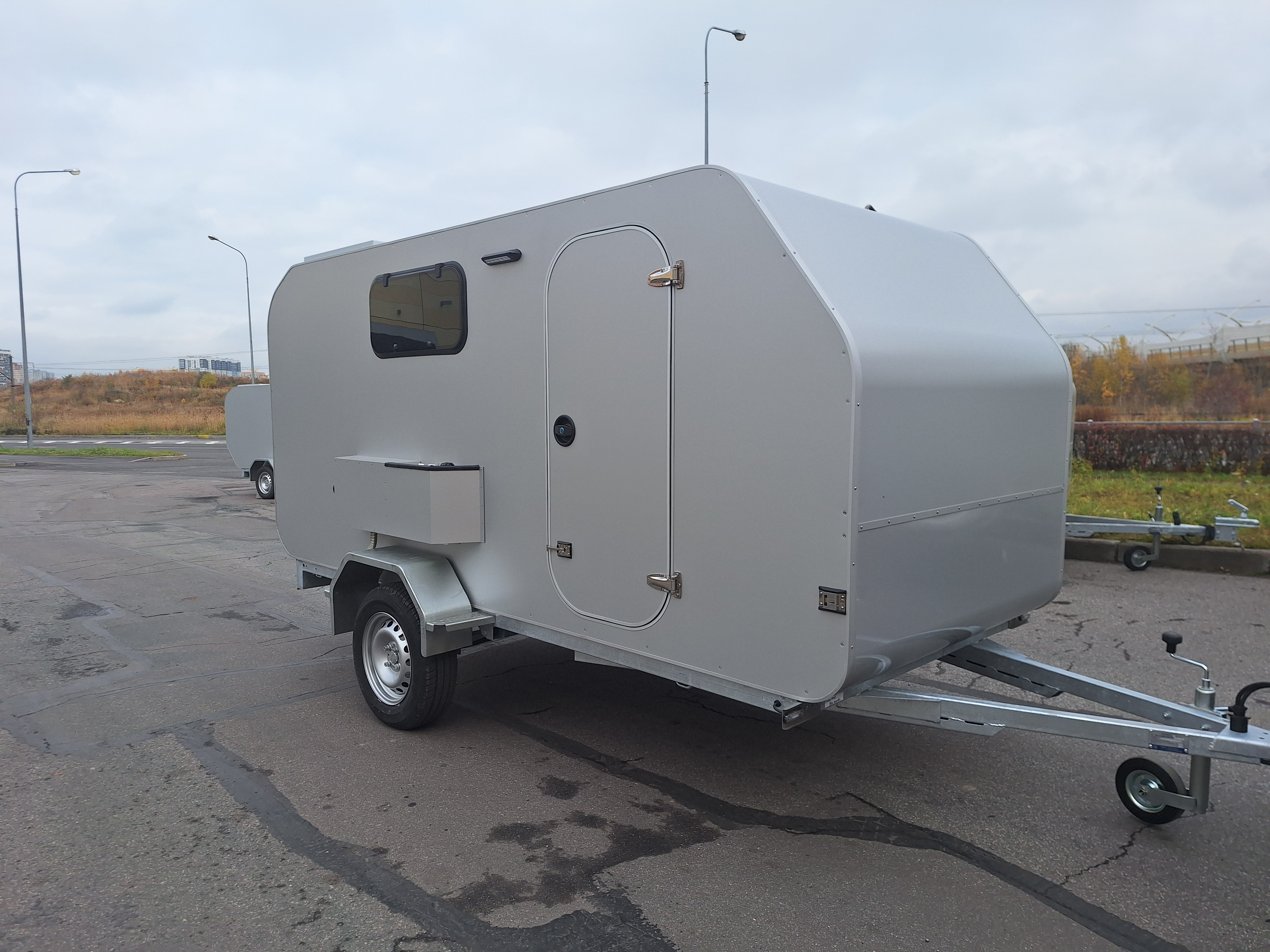 Утепленный модуль, шасси ЛАВ, две двери с окнами (Велес Мини, ЛС, ЛС 2 с одной дверью справа), солнечная панель с контроллером, зарядное устройство, внешняя розетка 220В, АКБ 55Ач, уличный свет, ящики для обуви (Велес Мини, ЛС, ЛС 2 ящики отсутствуют);