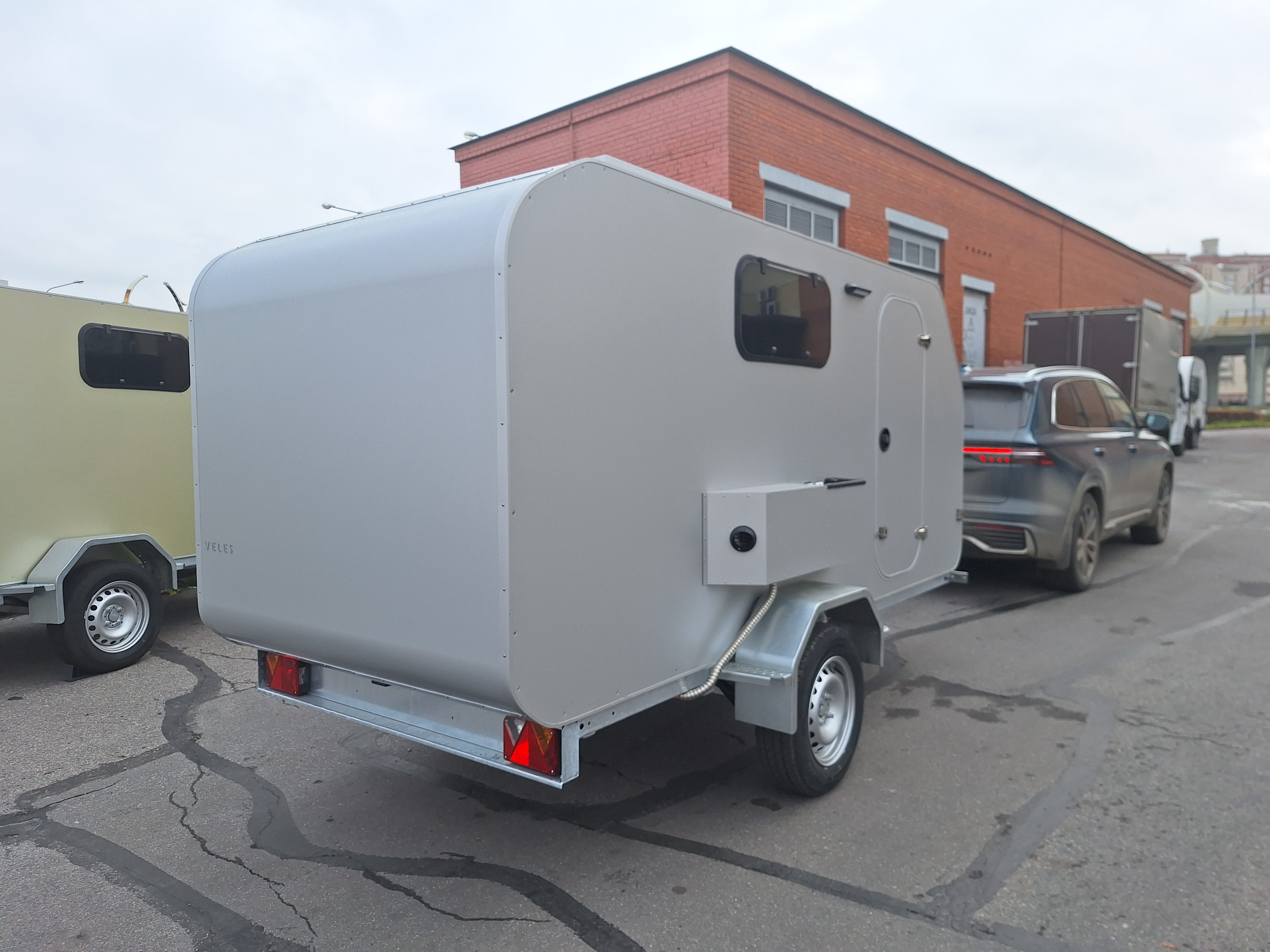 Утепленный модуль, шасси ЛАВ, две двери с окнами (Велес Мини с одной дверью справа), солнечная панель с контроллером, зарядное устройство, внешняя розетка 220В, АКБ 55Ач, уличный свет, ящики для обуви (Велес Мини ящики отсутствуют), отопитель Спутник, маркиза, детская полка (Велес Мини детская полка отсутствует);